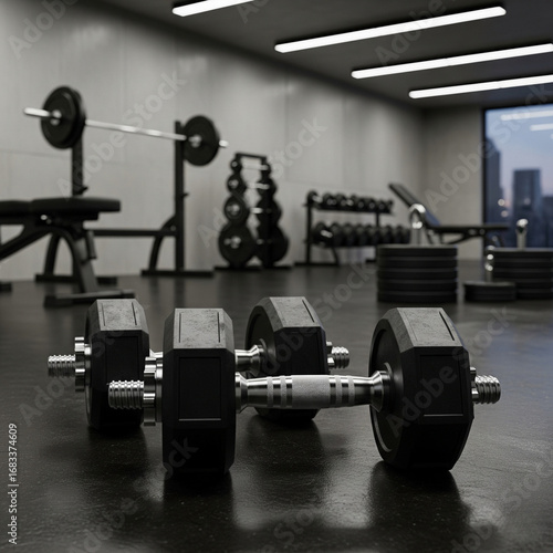Professional gym equipment ready for intense workout session indoors