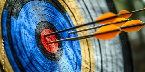 Close Up Of Arrows Hitting Target In Archery Sport Precision, Focus, And Achievement In Action