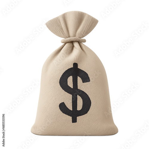 Worek na pieniądze z symbolem dolara. Koncepcja bogactwa, zysku, oszczędności i inwestycji. Ikona 3D.