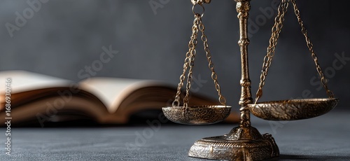Scales of Justice and Open Book - Symbolizing Law and Knowledge.