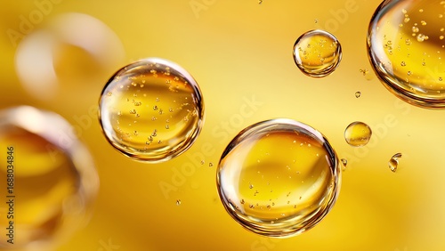 Golden Oil Bubbles Macro – Abstract Fluid Art for Skincare and Beauty