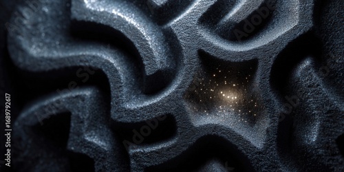 Abstract dark-blue texture with glowing core, creating a sense of depth and mystery.