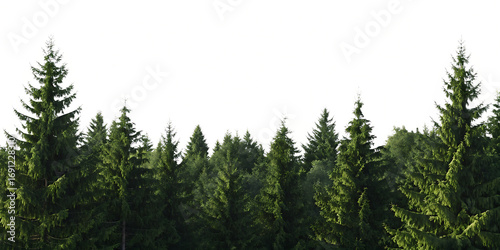 Dense evergreen spruce forest panorama isolated on a transparent background tree