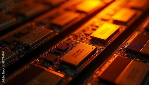 An array of DDR5 RAM modules with heat spreaders, arranged in a pattern, highlighting their design and specifications.