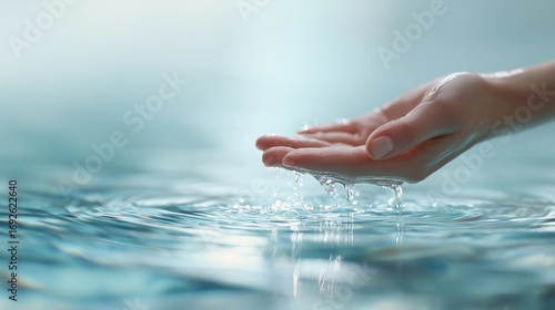 Close-up of hand touching water,natural background,beauty fashion,commercial,copy space