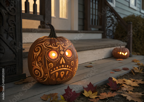 Ornate Pumpkin Porch Halloween Display
