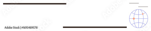 Horizontal lines intersecting a simplified globe with two highlighted points suggest global communication, connection, and interaction. Ideal for network, global reach, communication, internet