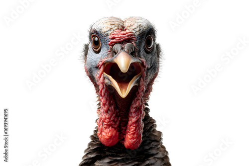 Shocked turkey bird with wide eyes and open beak isolated on transparent background