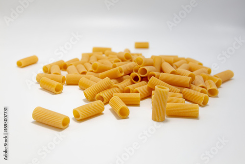 Makaron rigatoni na białym tle