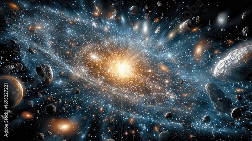 The Big Bang origin: cosmic genesis, stellar emergence, galactic dawn, spatial burst, celestial realm, universal entity, astral sphere, matter surge, nebular core, orbital form, luminous field,