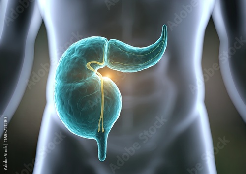 #1777198010Human Digestive System Highlighting Stomach in Medical 3D Illustration