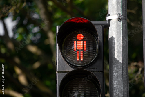 Czerwone światło dla pieszych na sygnalizacji świetlnej