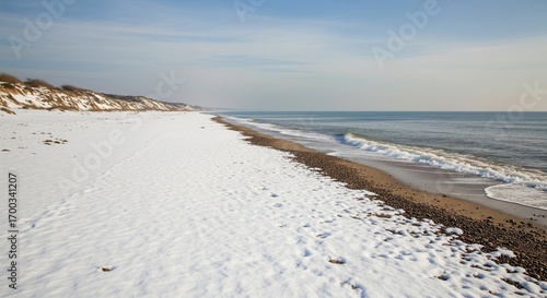 Spiaggia sovrastata dalla neve in un binomio estivo invernale