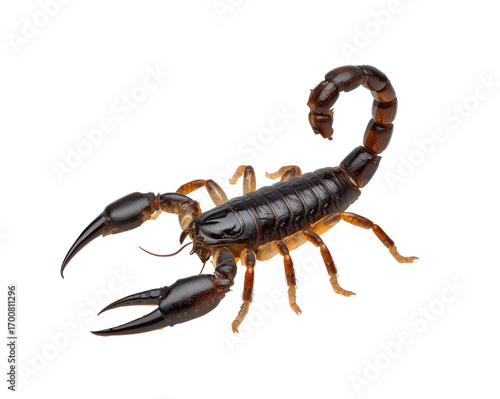 Detailed depiction of a threatening scorpion, showcasing its formidable pincers and segmented tail