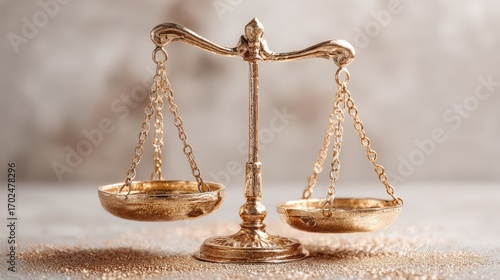 Balance scales representing justice in an elegant setting with soft lighting