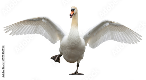 Mute swan flapping wings with one leg up isolated PNG with Transparent Background