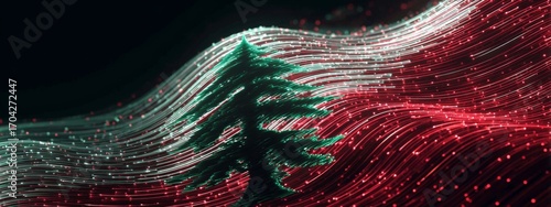 Digital Animation of the Lebanese Flag Waving in Futuristic Style with Vibrant Colors and Light Effects