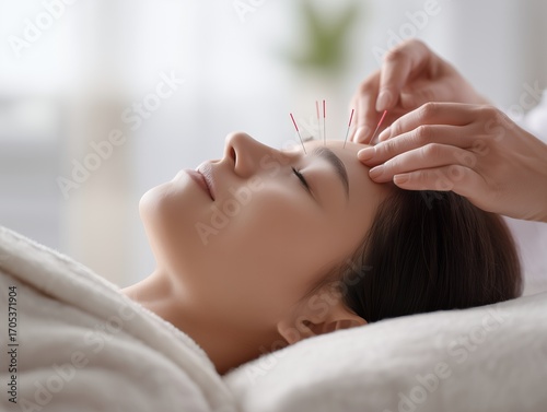美容鍼でリラックスする女性が目を閉じて安らぐリラクゼーションシーン