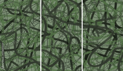 Modern interior triptych. The picture is painted by hand on a tablet.