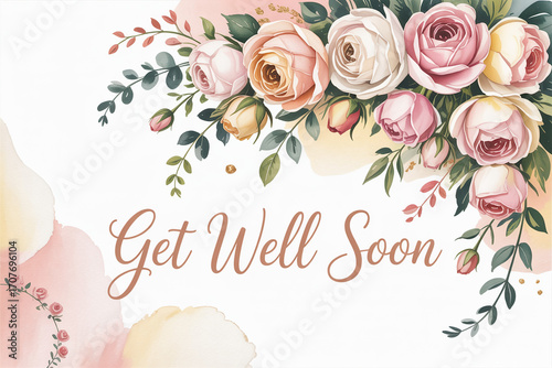 Sending heartfelt wishes for a speedy recovery with delicate floral accents and warm 'Get Well Soon' sentiment