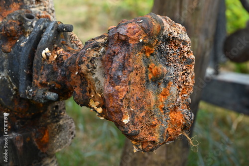 Port w Kużnicy. Części metalowe z wydobytego z Bałtyku kutra rybackiego .