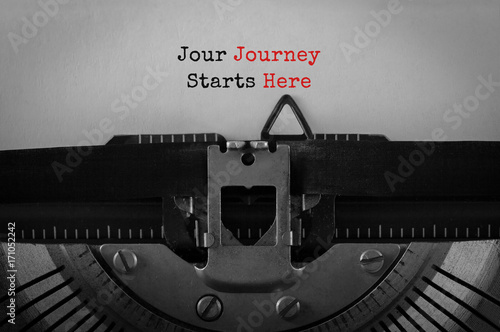 Text Jour Journey Starts Here typed on retro typewriter