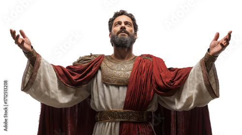 Pontius Pilate full body on transparent background, Roman governor in uniform holding staff, isolated biblical figure PNG for Christian and historical themes.