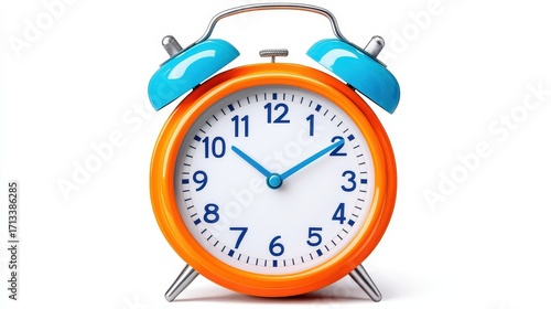 Bright Orange Alarm Clock with Blue Accents on White Background