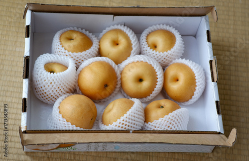 贈答用に箱詰めされた新鮮な和梨のフルーツセット