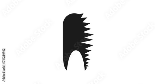 Abstract Black Comb-like Shape with Sharp Teeth and Smooth Curve.