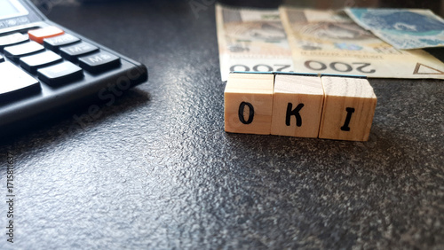 OKI acronym made of wooden letter cubes. Osobiste Konto Inwestycyjne (Personal Investment Account)