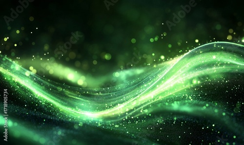 Futuristic speed motion with green rays of light, creating a dynamic digital effect for abstract designs and technological themes, Generative AI
