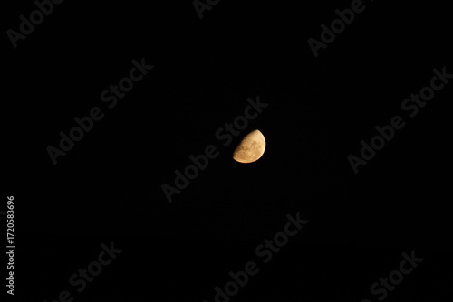 "Fotografía de la luna llena en un cielo nocturno despejado. Detalle nítido del satélite natural con su textura y cráteres visibles."