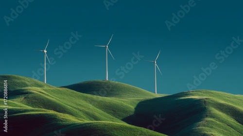 Green hills with wind turbines for clean energy production