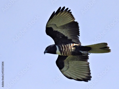 A female Black Baza soaring in the blue sky at Khao Dinsor Chumphon Thailand