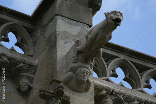 Gothic stone carvings of gargoyles on the Basilique Saint-Nazaire in Carcassonne, Aude, France.