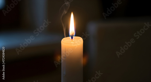 Single Lit Candle with Soft Glow — Minimal White Taper Candle on Dark Background