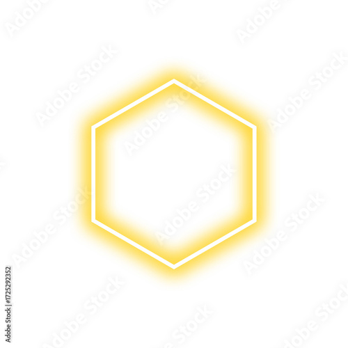 A glowing yellow hexagon shape with a soft, blurred outline on a white background.