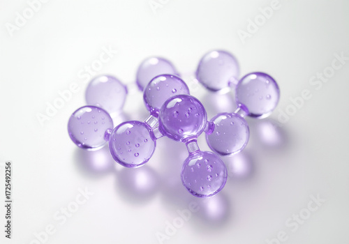 >Obrazy>紫色の分子構造・レチノールやPDRNなどエイジングケア成分を表現した高精細な美容ビジュアル / Purple Molecule Structure Image Representing Anti-Aging Ingredients like Retinol and PDRN for Skincare Ads