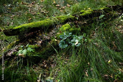 roślina, liście, las, zielone, jesień, drzewo, kłoda,pień