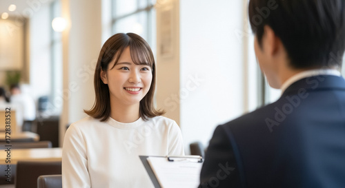 レストラン・カフェの面接を受ける女性