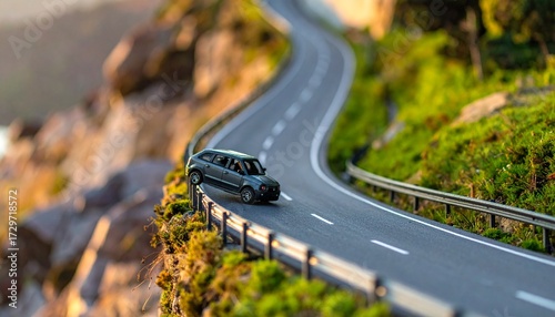 交通事故、自損事故(単独事故)のミニチュアの再現