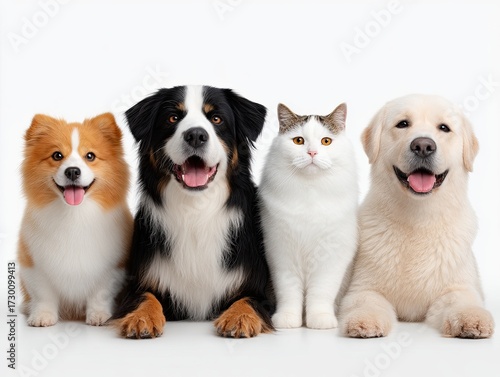Group of Domestic Animals Posing Together with Happy Expressions in Studio Environment