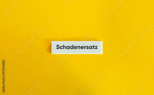 Schadenersatz auf weißer Buchstabenkarte vor gelbem Hintergrund