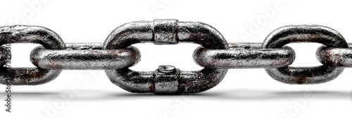 Close-up view of a metal chain link demonstrating strength and durability against a clean background