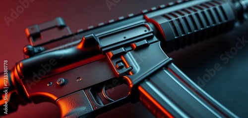 Close-up of modern assault rifle, details of magazine and trigger, weaponry, firearm