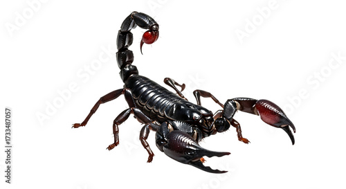 Detailed scorpion isolated on transparent background, showcasing its menacing claws, segmented body, and venomous stinger, a symbol of danger and resilience