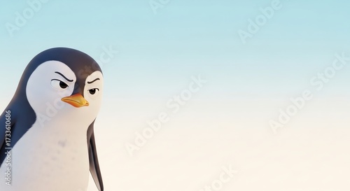 A Grumpy Penguin's Side-Eye Glance in a Clean, Stylized Arctic World