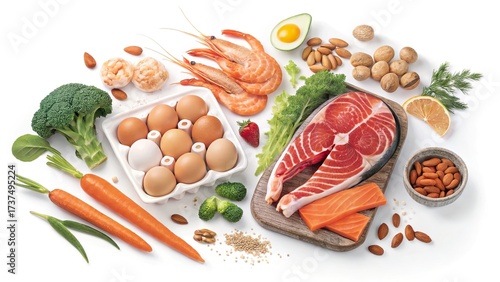Fresh seafood, vibrant vegetables, and nutritious meats create a colorful culinary spread for a delightful meal preparation