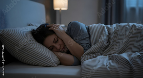 Woman Sleeplessness Troubled thoughts at night Worried female person is suffering from insomnia in bed Stressful problems Sleepless girl cant sleep Anxiety and depression